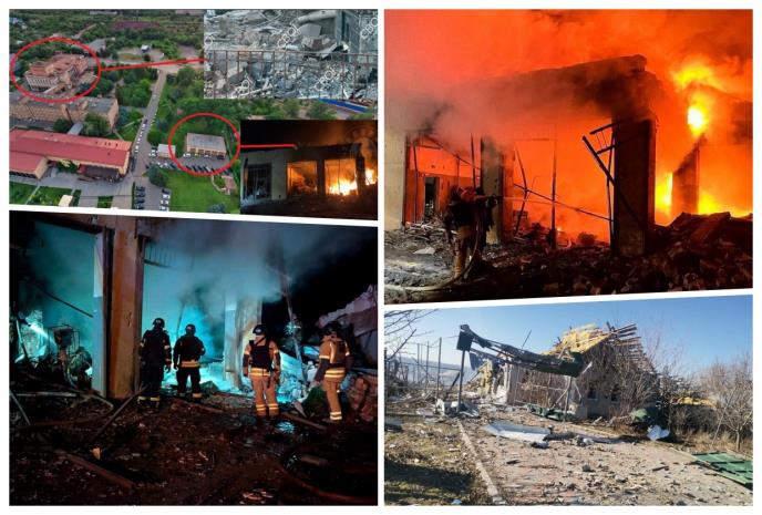 U još jednom napadu, zapaljena je jednospratna zgrada, a plamen se proširio na susednu strukturu pre nego što su vatrogasci obuzdali vatru na površini od 35 kvadratnih metara. U Pečerskom okrugu, na poslovnoj zgradi je oštećen prozor, ali požari nisu prijavljeni.