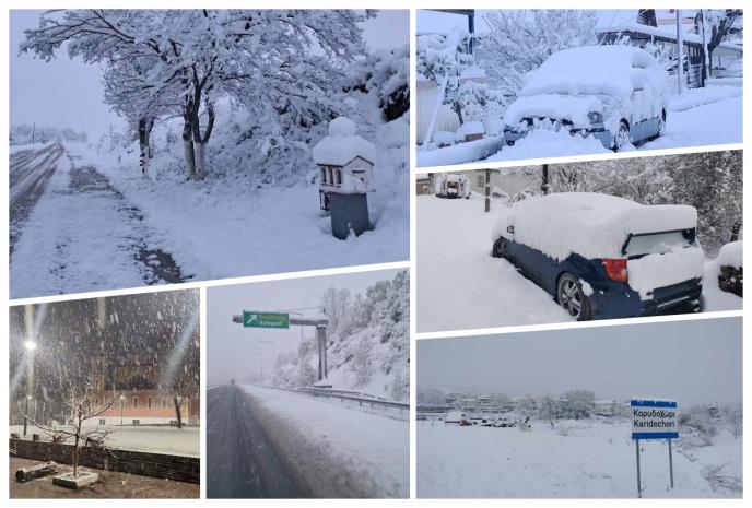 Karakteristične su slike iz Soluna, koji je osvanuo sa snežnom mećavom u nekoliko oblasti, piše Prototema.