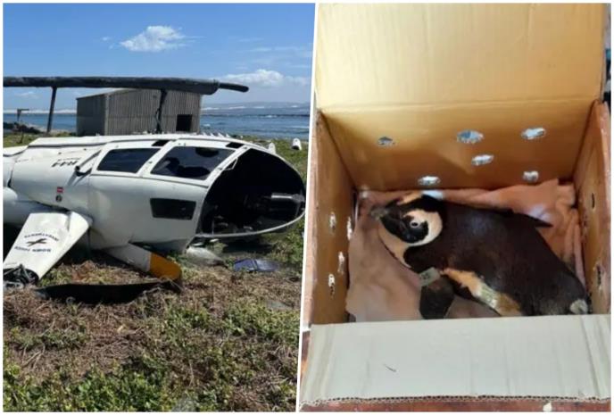 Pingvin, koji je bio smešten u kutiju i na krilu putnika, skliznuo je i oborio komande pilota neposredno nakon poletanja sa Bird Island kod Istočnog Kejpa 19. januara.