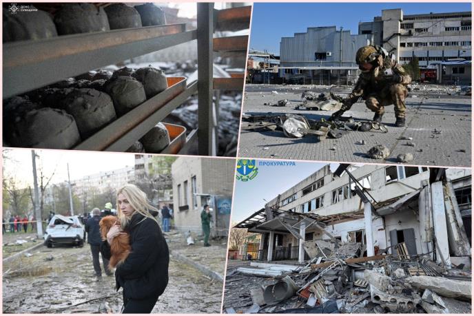 Ukrajinske hitne službe objavile su snimke s mesta napada. Na njima se vide poslužavnici sa uskršnjim kolačimaa prekriveni sivom prašinom, razbijeni prozori i oštećen enterijer.