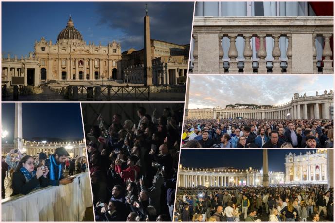 Na trgu Svetog Petra je opšte slavlje okupljenog naroda, dok se iz Vatikana čuju zvona. Procenjuje se da ima oko 50.000 vernika.
