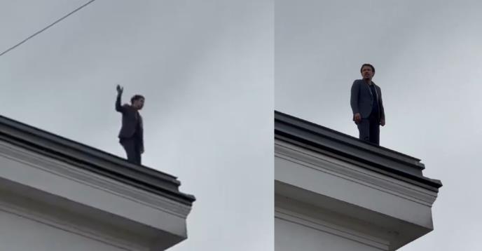 Poslanik se tokom svog govora obratio prolaznicima sa krova i, između ostalog, pretio da će skočiti. Kako je rekao, između ostalog, ne osuđuje nikoga, pa ni premijera Roberta Goloba, ali po njegovom mišljenju "ono što rade ovoj zemlji nije ispravno".