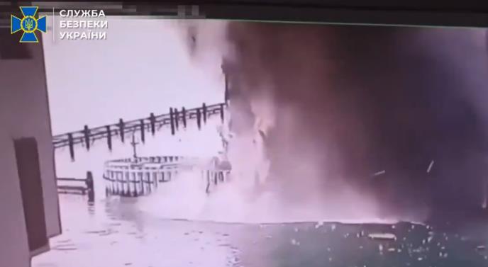 Ranije tog dana, ukrajinska služba bezbednosti SBU preuzela je odgovornost za napad, navodeći da je most pogođen podvodnim eksplozivom - i drumskim i železničkim delom konstrukcije.