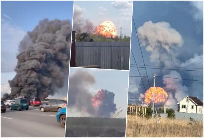 Na društvenim mrežama pojavio se i snimak ogromnog požara u skladištu goriva u moskovskom predgrađu Puškino, na 30 kilometara od Kremlja, kao i eksplozije za koje se tvrdi da su na području Kiržaha, na 100 kilometara od Moskve, gde se nalaze najveća ruska skladišta municije.