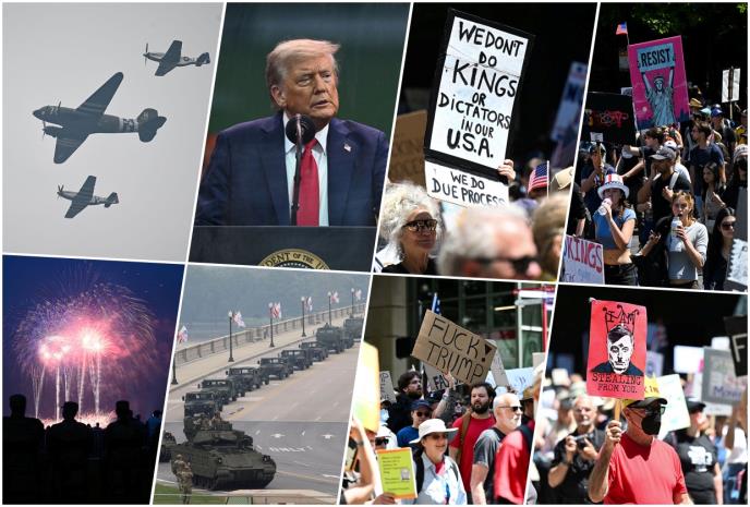 Velika vojna parada koju je američki predsednik Donald Tramp godinama priželjkivao prošla je juče niz Ustavnu aveniju Ustava uz tenkove, trupe i pozdravnu paljbu iz 21 topa, uprkos protestima koje su širom zemlje organizovali oni koji su šefa Bele kuće nazivali diktatorom i osobom koja bi da postane kralj.