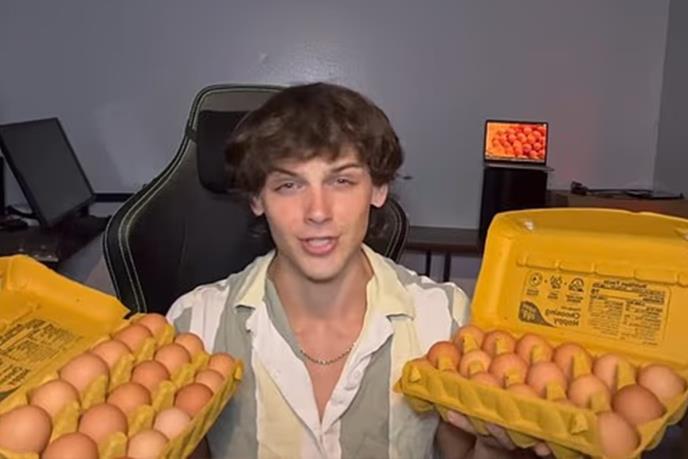 Ovaj kreator sadržaja, poznat po promovisanju tehnika za poboljšanje izgleda, dokumentovao je proces na Jutjubu objavljenom 16. juna. Kupio je 15 pakovanja po 12 velikih jaja za 36,45 dolara, opisujući to kao "odličnu kupovinu".