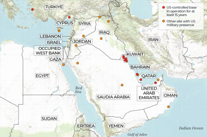 Američke baze pod rizikom uključuju: Vazdušnu bazu Al-Asad u Iraku (već napadana ranije), bazu Al-Tanf u Siriji i u Al-Hasaki, bazu Kula 22 u Jordanu (nedavno napadnuta dronom), bazu Al-Udeid u Kataru (najveća u regionu), kao i baze u Bahreinu, Kuvajtu i UAE.