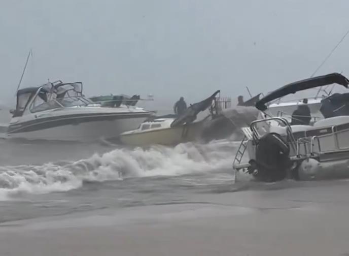 Vetar brzine do 56 km/h podigao je talase visoke i do 2,5 metra, prevrnuvši više čamaca, uključujući turistički brod dug 8,2 metra sa deset osoba na njemu.