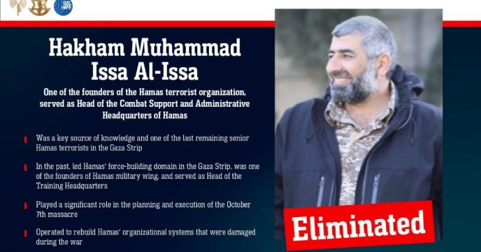 Palestinski izvori navode da je vojni instruktor Hamasa, Hakam Al-Isa, ubijen u napadu u Gazi, što predstavlja još jedan težak udarac za rukovodstvo i operativnu infrastrukturu ove organizacije.