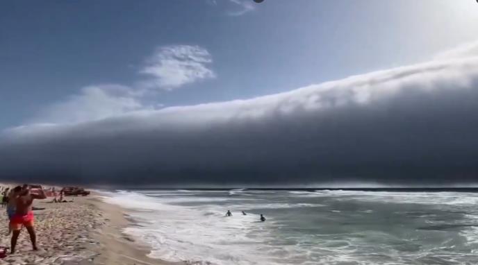 Na slikama koje se dele na društvenim mrežama vidi se ogroman horizontalni oblak kako napreduje od morskog horizonta ka plažama, dok turisti, koji deluju pomalo uplašeno, fotografišu neobičan prizor.