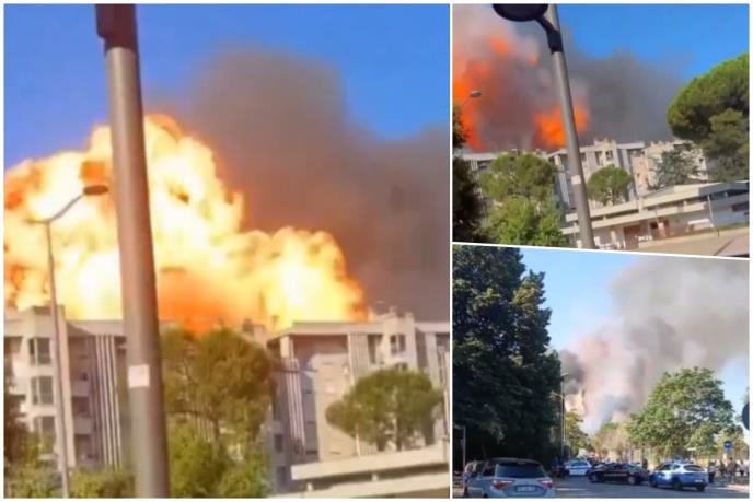 Šokantni snimci prikazuju požar i gust oblak dima koji se diže s mesta eksplozije - stanice za benzin, dizel i tečni naftni gas (LPG) u ulici Via dei Gordiani, u istočnom rimskom kvartu Prenestino.