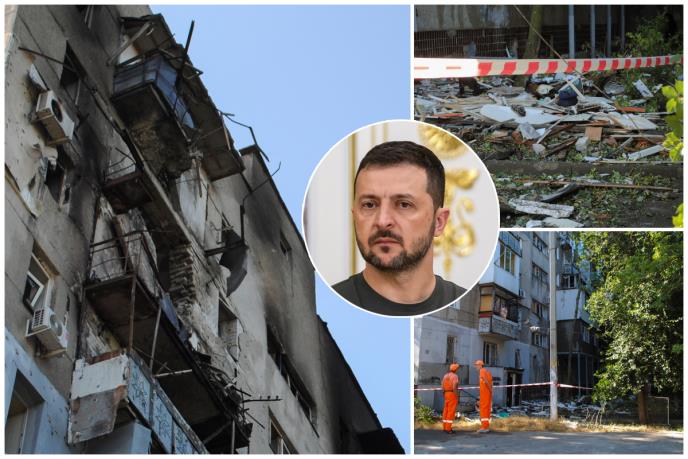 Zelenski je objavio fotografije koje prikazuju štetu na stambenoj zgradi u crnomorskom gradu Odesi, gde je jedna osoba poginula, a šest drugih povređeno, prema zvaničnim izveštajima.
