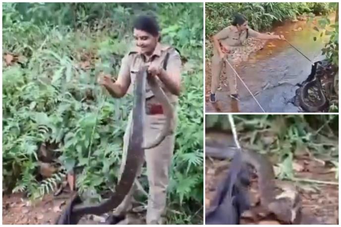 (VIDEO) KOBRA DUGA 6 METARA UHVAĆENA U INDIJI: Svet obilazi šok snimak, pogledajte kako se hrabra šumarka hvata u koštac sa zastrašujućom grdosijom!