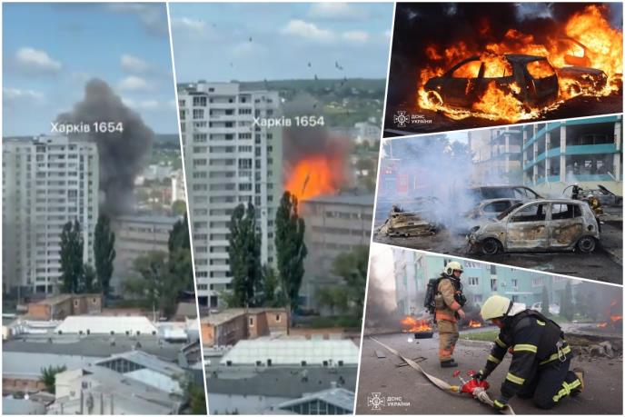 PAKAO USRED DANA U HARKOVU, RUSKE KLIZNE BOMBE POGAĐAJU SAM CENTAR! Zastrašujući snimak eksplozije u stambenom bloku, gore automobili (FOTO, VIDEO)