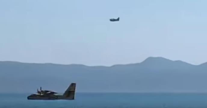AVION ZA GAŠENJE POŽARA PAO U MORE U GRČKOJ! Krenuo da pokupi vodu i tu ostao, letelica snimljena sa plaže (FOTO, VIDEO)