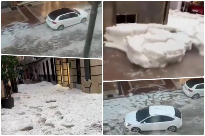 Mutna smeđa voda tekla je ulicama Moratalje, dok su krupne kugle leda veličine loptica za golf prekrile Karavaku de la Kruz i razbijale šoferšajbne parkiranih automobila.
