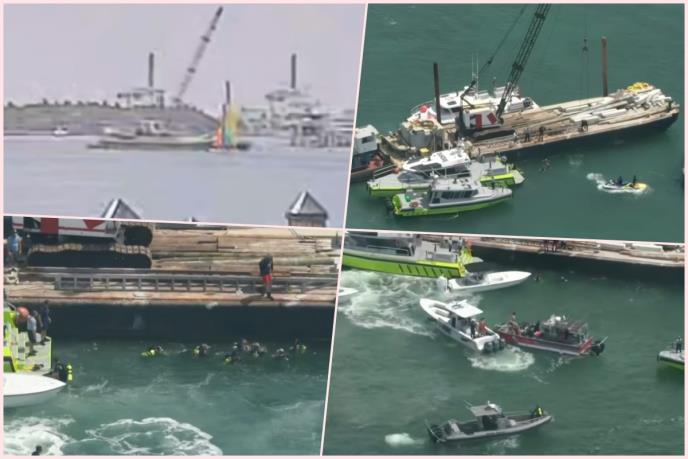 Tim Obalske straže je uspostavio bezbednosnu zonu u prečniku od 250 jardi oko mesta nesreće, gde je jedrilica i dalje potopljena ispod barže.