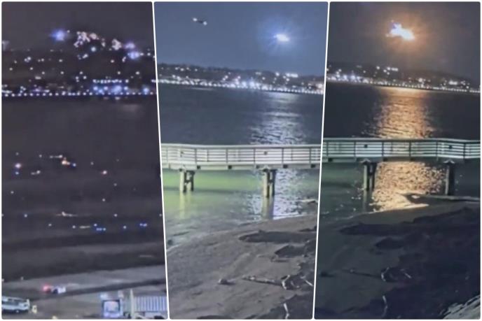 Sjajan bljesak se može videti kako obasjava noćno nebo dok se avion kretao ka Nacionalnom aerodromu Regan.