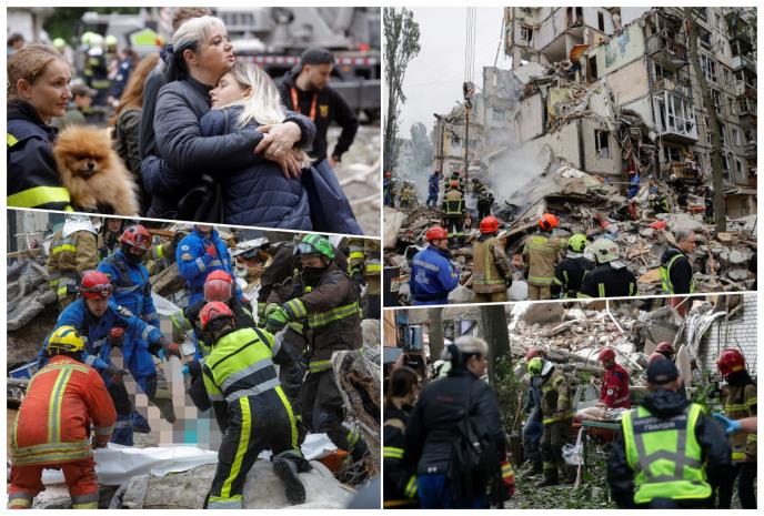 "Tokom cele noći, a i trenutno, nastavljene su operacije potrage i spasavanja. U Svjatošinskom okrugu i dalje se izvlače tela nastradalih. Spasioci su upravo izvukli još tri osobe", naveo je Tkačenko na Telegramu.