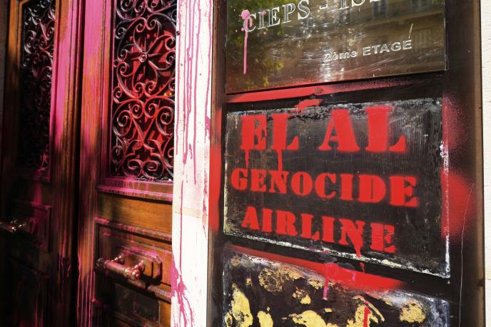 Kancelarija izraelske avio-kompanije El Al u Parizu vandalizovana je crvenom farbom, uz ispisivanje parola poput "Slobodna Palestina", saopštile su danas vlasti.