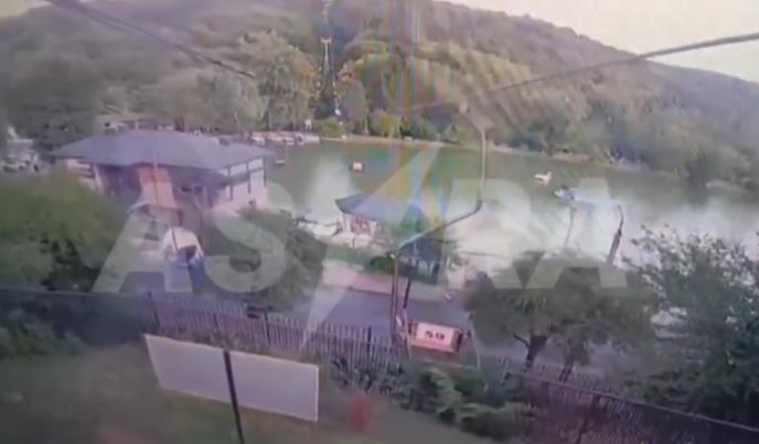 Na društvenim mrežama se pojavio novi, jeziv snimak trenutka kada se žičara iznenada srušila u ruskom odmaralištu, bacajući preplašene turiste na zemlju ili u vodu jezera preko koga su prelezili, preneo je Fox News.