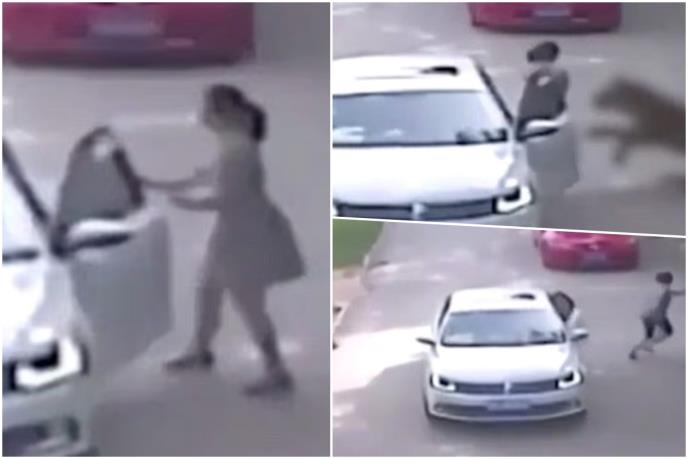 Jezivi snimak sa nadzornih kamera iz Badaling Wildlife World u Pekingupokazuje ženu (čije ime nije objavljeno) kako izlazi iz svog srebrnog automobila, a potom je napada velika mačka.