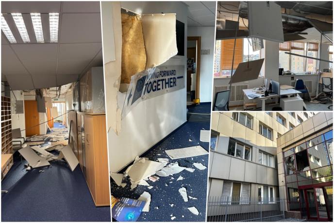 Katarina Maternova, ambasadorka EU u Ukrajini, objavila je da je zgrada "teško oštećena udarnim talasom" tokom "masovnog" napada dronovima i balističkim raketama koje je Rusija pokrenula na Ukrajinu.