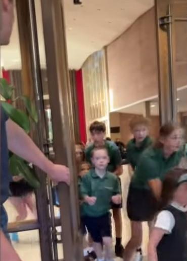 Na snimku se vide kako deca u panici napuštaju crkvu dok jedan odrasli pita: "Gde je napadač?".