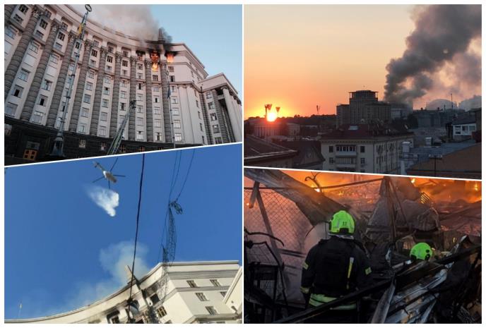 Delovi fronova i raketa pogodili su i zgradu Vlade Ukrajine u okrugu Pečersk, zapalivši gornje spratove. Neposredno pred zoru, novinar Kijev posta čuo je karakterističan zvuk projektila iznad centra prestonice, a zatim snažnu eksploziju.