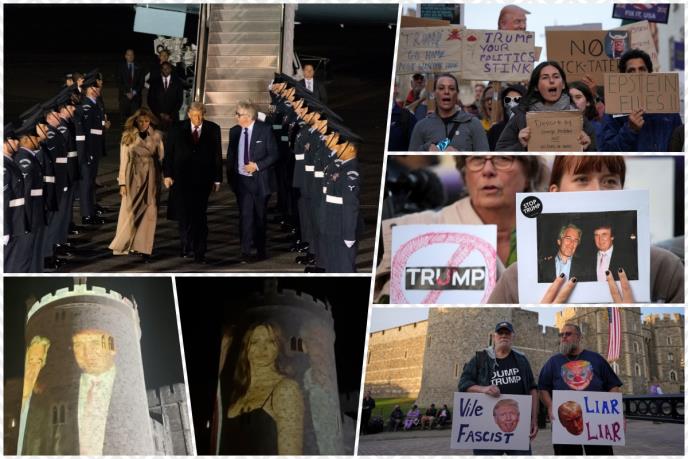 Ali dok je Tramp sinoć išao ka rezidenciji američkog ambasadora u Britaniji koja se nalazi u centru Londona i u kojoj je prespavao, demonstranti su na zidine Vindzorskog zamka emitovali džinovske projekcije predsednika SAD u društvu pokojnog osuđenog američkog pedofila i milijardera Džefrija Epstajna.