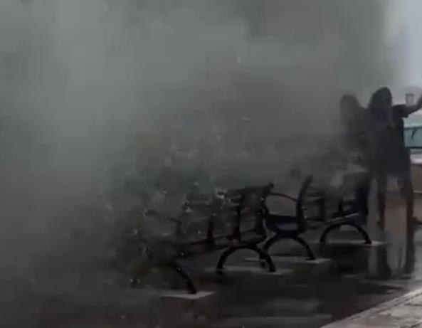 Kada je talas pao na njih, silovito ih je bacio na metalnu ogradu. Dok se voda povlačila, viđeni su kako se muče da ponovo ustanu