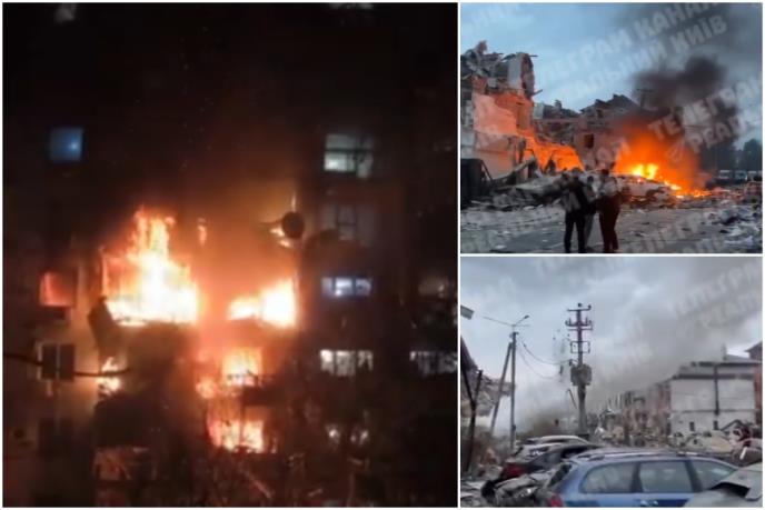 U glavnom gradu delimično je uništena petospratnica, a stambena infrastruktura oštećena je u više gradskih opština, izjavio je šef Kijevske vojne administracije Timur Tkačenko. Pogođene su i nestambene zgrade i parkirani automobili.
