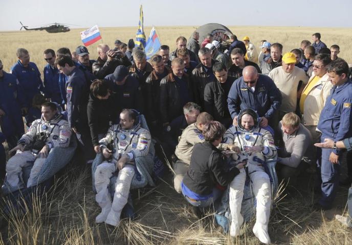 Ruski kosmonauti Pavel Vinogradov, Aleksander Misurkin i Amerikanac Kristofer Kesidi vratili su se na Zemlju pošto su u svemiru proveli 165 dana, dok su ruski astronaut Fjodor Jurčikin, Italijan Luka Parmitano i Amerikanac Karen Niberg ostali u Međunarodnoj svemirskoj stanici.