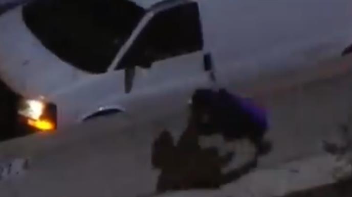 Međutim, posrnuo je i pao u najbržu traku - istog trenutka na njega naleteo automobil i direktno ga udario - dok je kamera snimala čitavu scenu u kojoj se videlo da ni drugi automobili nisu mogli da se zaustave.