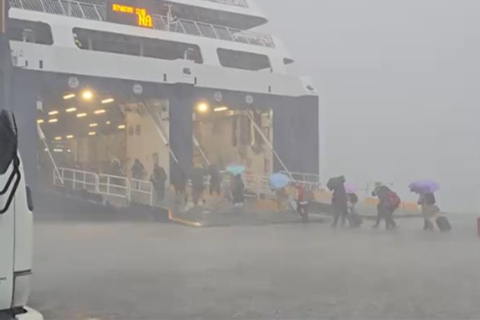 Zbog obilnih kiša i jakog vetra, putnici su se teško probijali do brodova, a ni kišobrani ni kabanice nisu im mnogo pomogli.