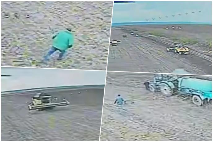 Snimak je objavila 12. brigada Azovana svojoj Fejsbuk stranici, a na njemu se navodno vidi najmanje četvoro ljudi koji beže preko polja, ostavljajući poljoprivredne mašine iza sebe dok dron kruži iznad njih.