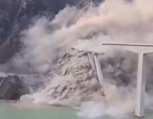 Most dužine 748 metara deo je državnog autoputa koji provinciju povezuje sa Tibetom, a do pukotina je navodno došlo zbog velike količine padavina.