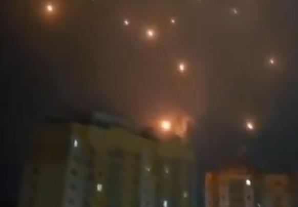Kratkotrajno upozorenje za ostanak u skloništima izdato je oko 4:30 sata ujutru, nakon čega su usledili jaki zvuci i snažne eksplozije koje su stanovnici zabeležili na snimcima, uključujući i video-materijal na kojem se vidi kako delovi padaju na stambeno područje.