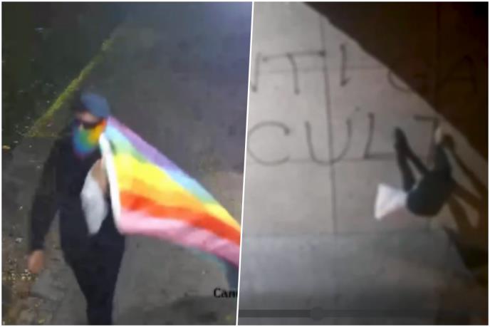 Njujorška policija (NYPD) traga za osumnjičenom osobom koja je nosila zastavu duginih boja i koja je optužena da je oskrnavila tri crkve "antihršćanskim natpisima" tokom 20-minutnog vandalskog pohoda prošlog meseca.