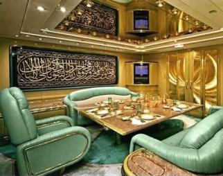 Mnogi ovaj avion nazivaju "letećom palatom" jer je kabina je ukrašena pozlaćenim detaljima, u kupatilima se navodno nalaze lavaboi od čistog zlata, zidovi su obloženi posebnim kristalnim i drvenim panelima, dok dnevni boravak i sala za sastanke izgledaju kao da su preneti iz neke luksuzne palate.