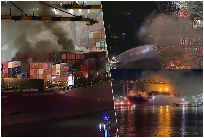 Sva 23 člana posade su pronađena i niko nije povređen u požaru za koji se veruje da je izbio ispod palube, prema informacijama vatrogasne službe Los Anđelesa. Teret broda sadrži i opasne materijale.