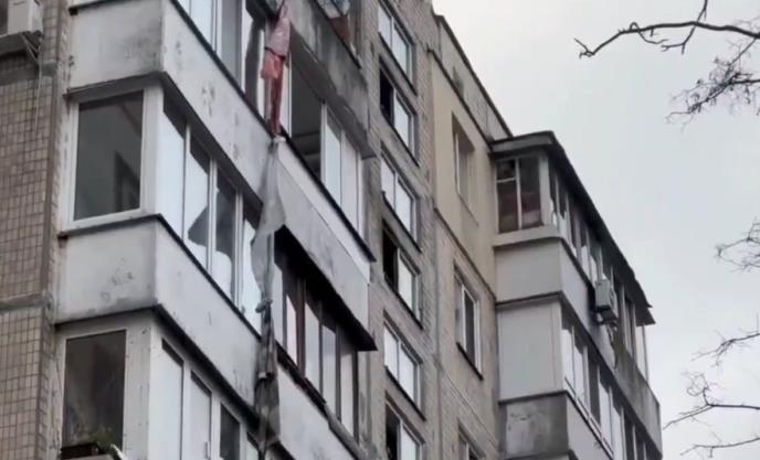 Bivši savetnik ukrajinskog Ministarstva za ukrajinska pitanja objavio je na X video za koji tvrdi da prikazuje improvizovani „konopac“ napravljen od ćebadi i čaršava koje su stanovnici Kijeva spustili kroz prozor u pokušaju da pobegnu iz jedne od pogođenih zgrada, koja se zapalila nakon ruskog udara.