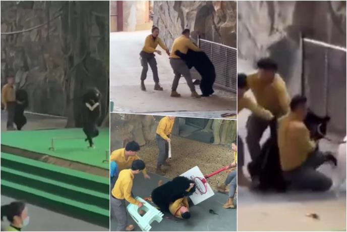 Kamerom je zabeležen trenutak kada je ogromni crni medved napao svog dresera u zoološkom vrtu u istočnoj Kini.