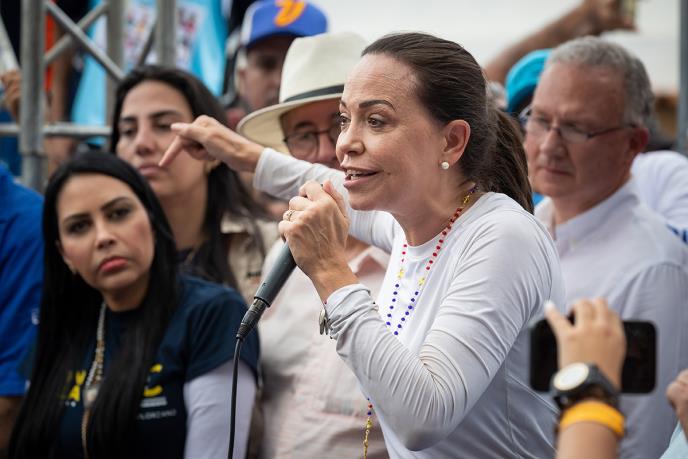 Predsednik Venecuele Nikolas Maduro, na vlasti je od 2013. i tvrdi da američki predsednik Donald Tramp pokušava da ga svrgne kako bi dobio pristup ogromnim venecuelskim rezervama nafte i da će se građani i oružane snage Venecuele odupreti svakom takvom pokušaju. Kada je Mačado u oktobru osvojila Nobelovu nagradu za mir, delom ju je posvetila Trampu, koji je i sam rekao da zaslužuje tu čast.