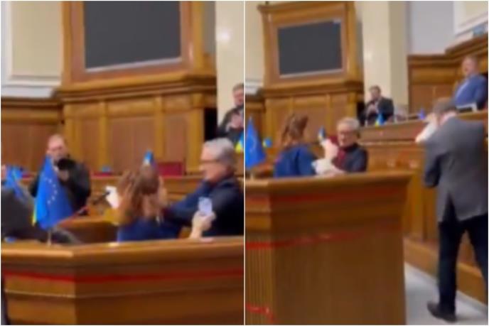 „Molim da se govornica očisti od rezultata kreativne aktivnosti pojedinih poslanika“, rekao je predsednik Vrhovne rade Ruslan Stefančuk.