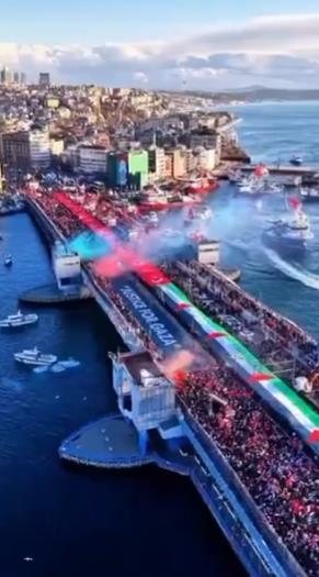 NEZAPAMĆENE SCENE, VIŠE OD POLA MILIONA LJUDI NA GALATA MOSTU: Masovni marš podrške Palestini u Istanbulu! (FOTO/VIDEO)