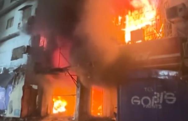 Video zapisi prikazuju plamen kako kulja iz zgrade dok su se vatrogasci tokom noći trudili da spreče širenje vatre u gusto naseljenoj poslovnoj četvrti. Stotine ljudi okupile su se oko zgrade, uključujući vlasnike radnji čije su poslovnice uništene u požaru.