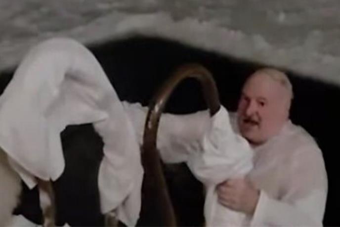 Predsednik Belorusije Aleksandar Lukašenko učestvovao je u tradicionalnom bogojavljenskom kupanju u ledenoj vodi, uprkos niskim temperaturama.