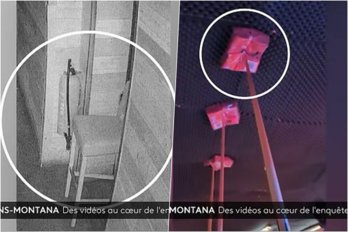 Pojavio se snimak sa nadzornih kamera pre požara u švajcarskom noćnom klubu u Kran-Montani, na kojem se vidi stolica zaglavljena uz izlaz za slučaj opasnosti i zaposleni koji koriste bilijarske štapove da podupru izolacionu penu.