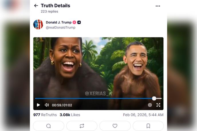 Američki predsednik Donald Tramp objavio je video o teoriji zavere o izborima 2020. na svojoj društvenoj mreži Trut (Truth Social) u kojem je ubačen segment koji prikazuje bivšeg predsednika Baraka Obamu i njegovu suprugu Mišel kao majmune, što je izazvalo oštru osudu istaknutih demokrata.